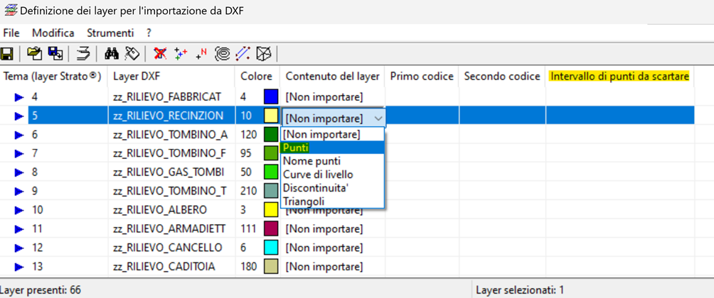 Si va a definire ogni layer che deve essere importato. Se si stanno importando delle curve di livello è possibile, inoltre, impostare un intervallo di punti da scartare. Una volta terminato si vanno a salvare le impostazioni date da “File”/”Salva”.