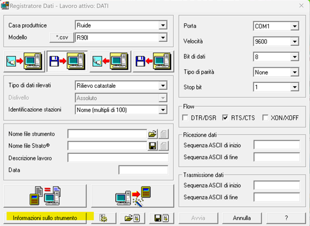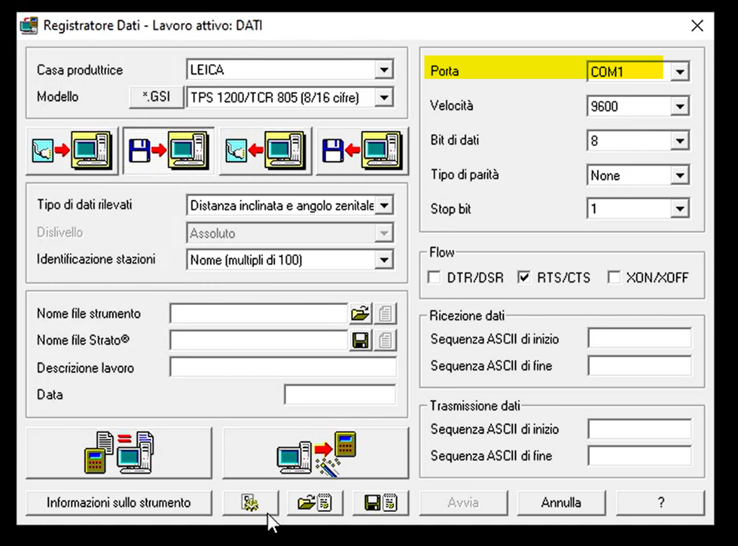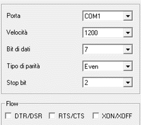 -Porta: è necessario identificare su che porta seriale è collegato lo strumento.