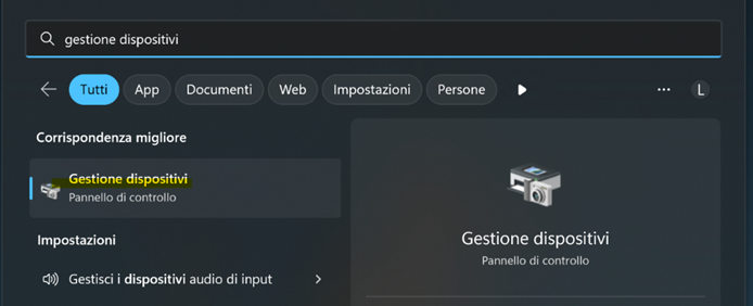Per capire qual è la corretta porta da inserire in registratore dati, andare su "Gestione dispositivi"