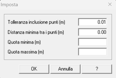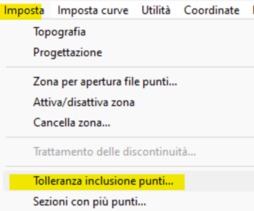 A questo punto sarà necessario impostare una tolleranza di inclusione punti, prima di estrarre il lavoro, tale comando è possibile trovarlo da "Imposta" / "tolleranza inclusione punti"