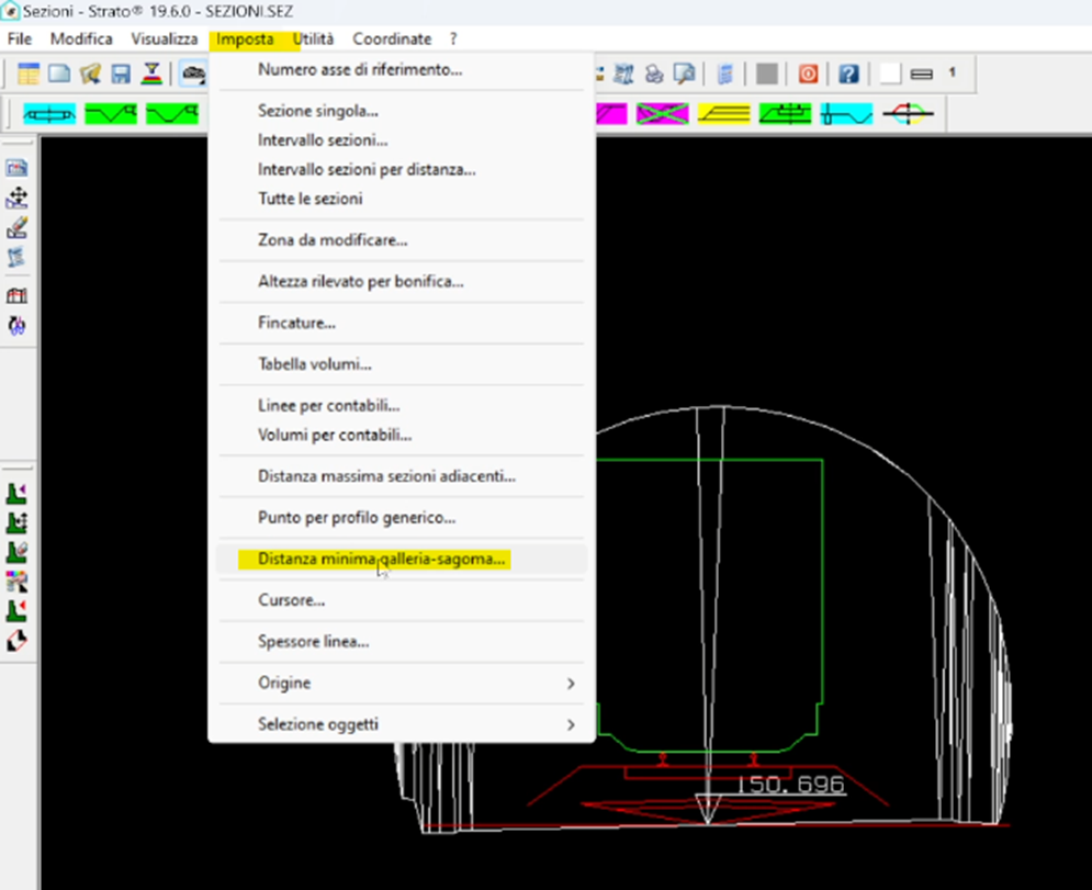 Successivamente cliccare su “Imposta” / “Distanza minima galleria-sagoma”