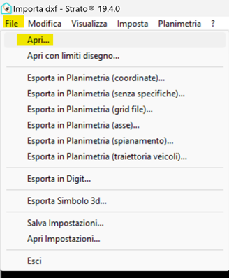 Si apre un'entità grafica da dove è possibile aprire il file dxf da "File" / "Apri"