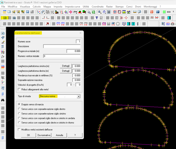 Il primo step sarà quello di disegnare il nuovo asse stradale o ferroviario che sia che attraversa le sezioni in galleria.