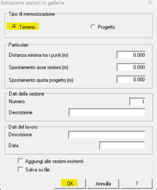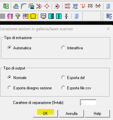 Successivamente estrarre il lavoro per le sezioni in galleria cliccando su "Estrazione di sezioni in galleria"