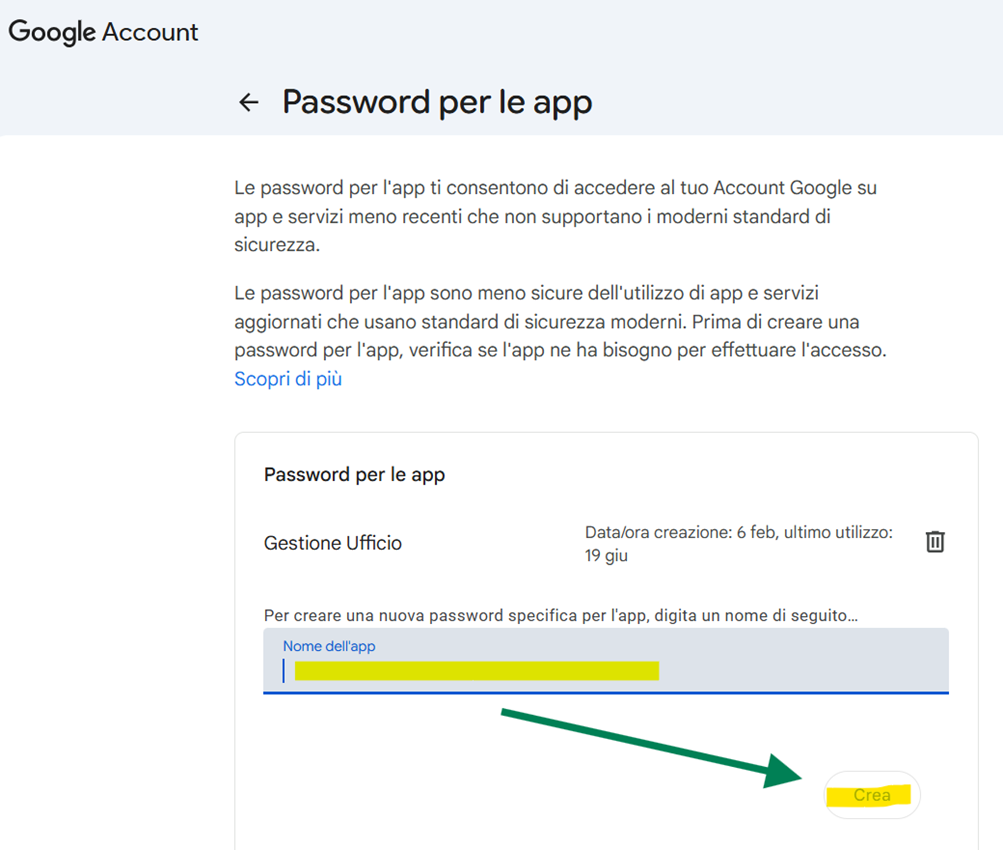 Andare nella sezione "Crea e gestisci le tue password per le app":