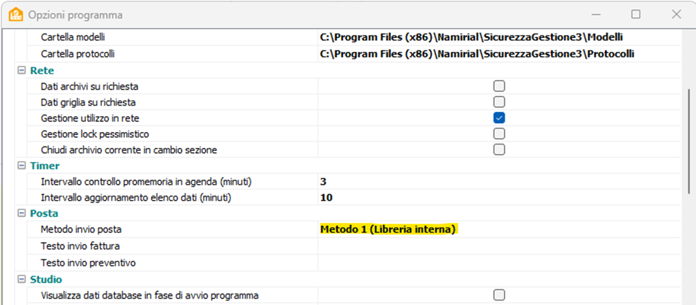 Affinché tale procedura vada correttamente a buon fine, è fondamentale impostare come metodo di invio della posta il Metodo 1 con libreria interna.